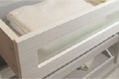 滑轨隐藏于抽屉外侧板内,完善美观更保护衣物,推拉顺滑、静音,承重量达30KG。